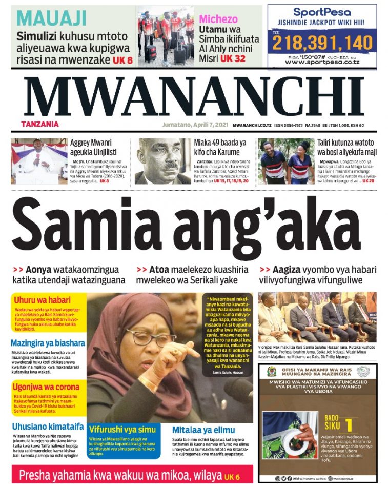 MagazetiPITIA VICHWA VYA HABARI KATIKA MAGAZETI YA LEO APRIL 7,2021 Last updated: 2021/04/07 at 4:08 AM joseph 5 years ago Share SHARE joseph April 7, 2021 April 7, 2021 Share this Article Facebook Twitter Email Print Previous Article KATIBU MKUU WIZARA YA VIWANDA NA BIASHARA PAMOJA NA NAIBU WAKE WAMEWASILI OFISI NDOGO YA WIZARA DSM Next Article MHE.RAIS SAMIA SULUHU HASSAN ASHIRIKI MAADHIMISHO YA KUMBUKUMBU YA HAYATI ABEID AMAN KARUME