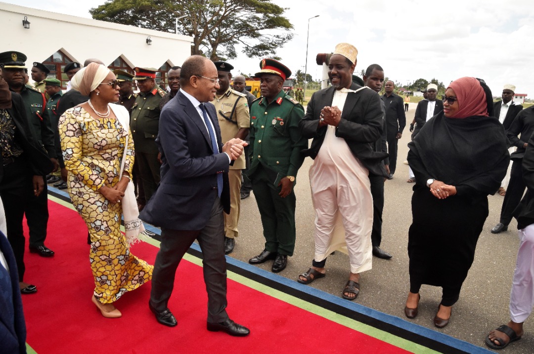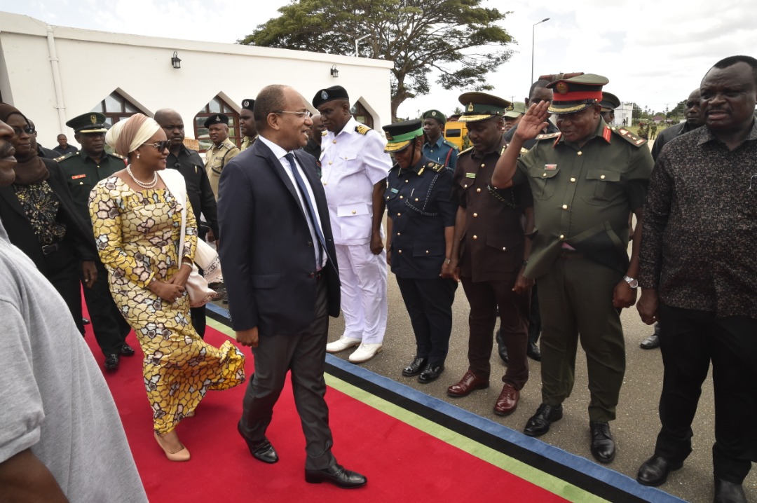 RAIS wa Zanzibar na Mwenyekiti wa Baraza la Mapinduzi Mhe.Dk. Hussein Ali Mwinyi akiwa na Mkewe Mama Mariam Mwinyi akisalimiana na Wakuu wa Vyombo vya Ulinzi na Usalama Zanzibar, Uwanja wa Ndege wa Kimataifa wa Abeid Amani Karume akiondoka Zanzibar kuelekea Nchini Msumbiji kumuwakilisha Rais wa Jamuhuri ya Muungano wa Tanzania Mhe. Samia Suluhu Hassan, katika Mkutano wa Wakuu wa Nchi za SADC unaofanyika Jijini Maputo Msumbiji (Picha na Ikulu)