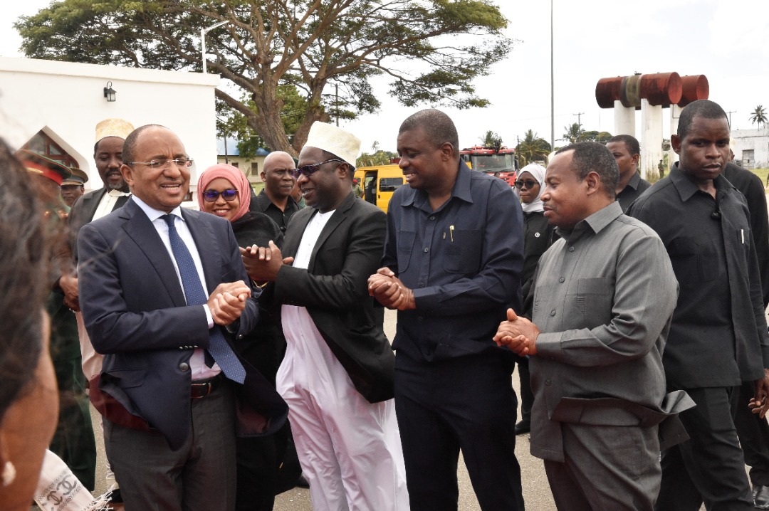 RAIS wa Zanzibar na Mwenyekiti wa Baraza la Mapinduzi Mhe.Dk.Hussein Ali Mwinyi akisalimiana na kuagana na Makamu wa Kwanza wa Rais wa Zanzibar Mhe. Othman Masoud Othman, Makamu wa Pili wa Rais wa Zanzibar Mhe. Hemed Suleiman Abdulla na Mkuu wa Mkoa wa Mjini Magharibi Unguja Mhe Idrisa Mustafa Kitwana, akielekea Nchini Msumbiji kuhudhuria Mkutano wa Wakuu wa Nchi za SADC, akimuwakilisha Rais wa Jamuhuri ya Muungano wa Tanzania Mhe. Samia Suluhu Hassan, unaofanyeka Jijini Maputo Msumbuji.(Picha na Ikulu)