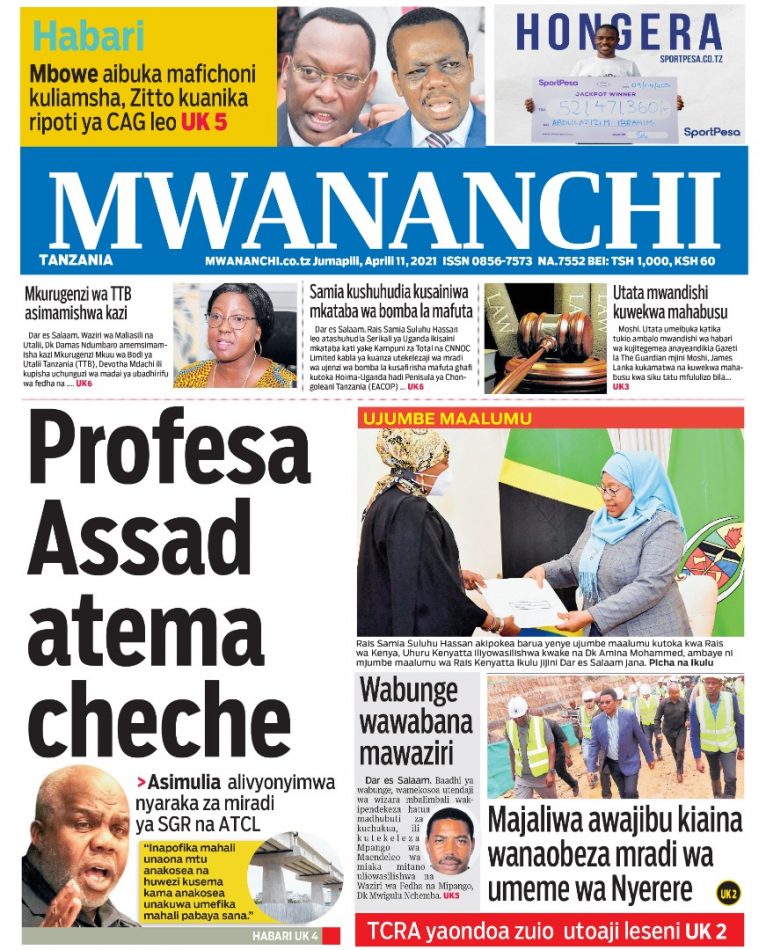 MagazetiPITIA VICHWA VYA HABARI KATIKA MAGAZETI YA LEO APRIL 11,2021 Last updated: 2021/04/11 at 4:31 AM Alex Sonna 5 years ago Share SHARE Alex Sonna April 11, 2021 April 11, 2021 Share this Article Facebook Twitter Email Print Previous Article WALIMU WASHAURIWA KUITUMIA TSC KUTATUA KERO ZAO Next Article MSICHANA INITIATIVE NA MACHAMPIONI WAO WAKUTANA NA WADAU WA KUTOKOMEZA NDOA ZA UTOTONI SHINYANGA
