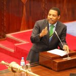 Afisa Mtendaji Mkuu wa Britam Tanzania, Raymond Komanga ( kushoto ) akizungumza kwenye uzinduzi wa huduma mpya ya VodaBima (Bimika Kidijitali) itakayowezesha mteja kulipia bima kwa simu ya mkononi kupitia M-Pesa. Uzinduzi huo umefanyika leo jijini Dar Es Salaam.