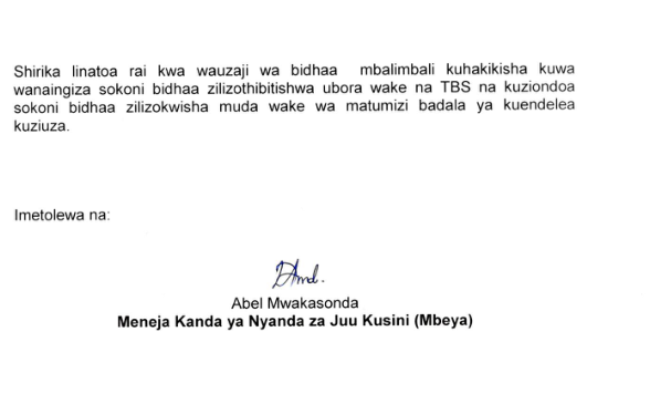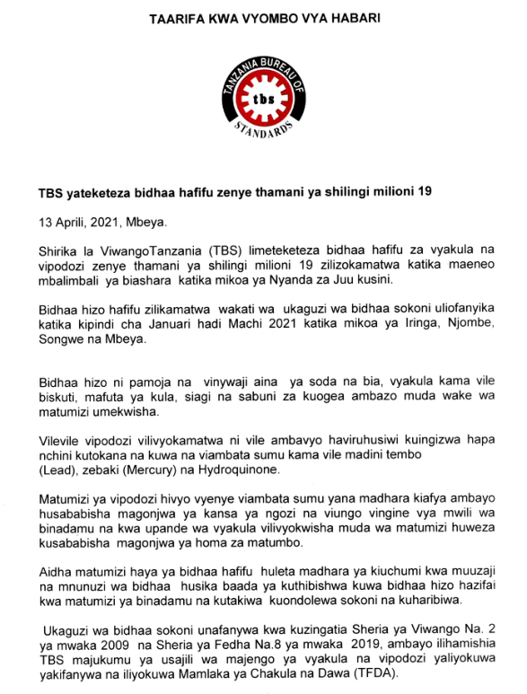 MchanganyikoTBS YATEKETEZA BIDHAA HAFIFU KANDA YA NYANDA ZA JUU KUSINI Last updated: 2021/04/13 at 12:40 PM John Bukuku 5 years ago Share SHARE John Bukuku April 13, 2021 April 13, 2021 Share this Article Facebook Twitter Email Print Previous Article MENEJIMENTI YA NCAA YAFANYA ZIARA YA MAFUNZO YA UCHAKATAJI MAZAO YA NYUKI SINGIDA NA DODOMA Next Article MAJALIWA: TUTAYAENZI MAONO, JITIHADA NA JUHUDI ZA HAYATI MAGUFULI