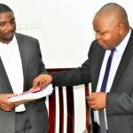 Kaimu Kamishna wa Uhifadhi, Mamlaka ya Usimamizi wa Wanyamapori (TAWA), Mabula Misungwi (kulia) sambamba na Mkurugenzi wa Shirika lisilo la Kiserikalia la Usimamizi wa Uhifadhi wa Wanyamapori (WCS), Noah Mpunga, wakionesha hati za makubaliano yenye lengo la kuhakikisha kunakuwa na usimamizi wa pamoja wa miradi mbali mbali ya mifumo ya Ikolojia wa Ruaha-Katavi. (Picha na Mpigapicha wetu).