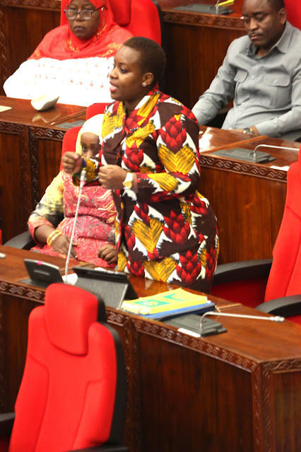 MBUNGE wa Viti Maalumu (CCM) kupitia Kundi la Asasi za Kiraia nchini (NGOs) Mhe. Neema Lugangira akichangia kwenye Hotuba ya Bajeti ya Ofisi ya Waziri Mkuu ambayo alijiwekeza kwenye mambo mawili ya Lishe na Sekta ya Asasi za Kiraia (NGOs, CSOs na CBOs)