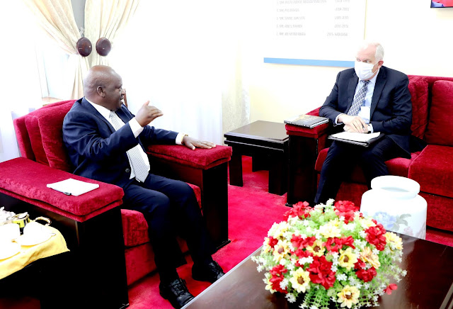 Spika wa Bunge, Mhe. Job Ndugai (kushoto) akizungumza na Balozi wa Marekani nchini Tanzania, Mhe. Dkt. Donald Wright alipomtembelea leo ofisini kwake Bungeni Jijini Dodoma. Dhumuni la miadi hiyo ni kumsalimu na kujadili masuala Mbalimbali ya ushirikiano wa kisekta kati yao na Bunge la Jamhuri ya Muungano wa Tanzania.
