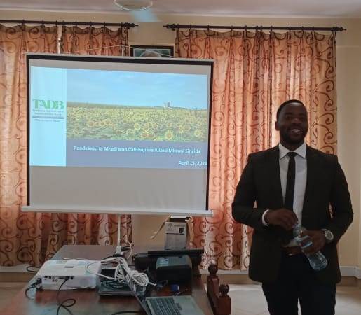 KAIMU Afisa Maendeleo Vijana Mkoa wa Singida, Frederick Ndahani amewataka Vijana wa Mkoa wa Singida kuchangamkia fursa ya mkopo wa kilimo cha zao la alizeti unatolewa na Benki ya Maendeleo ya Kilimo Tanzania (TADB)