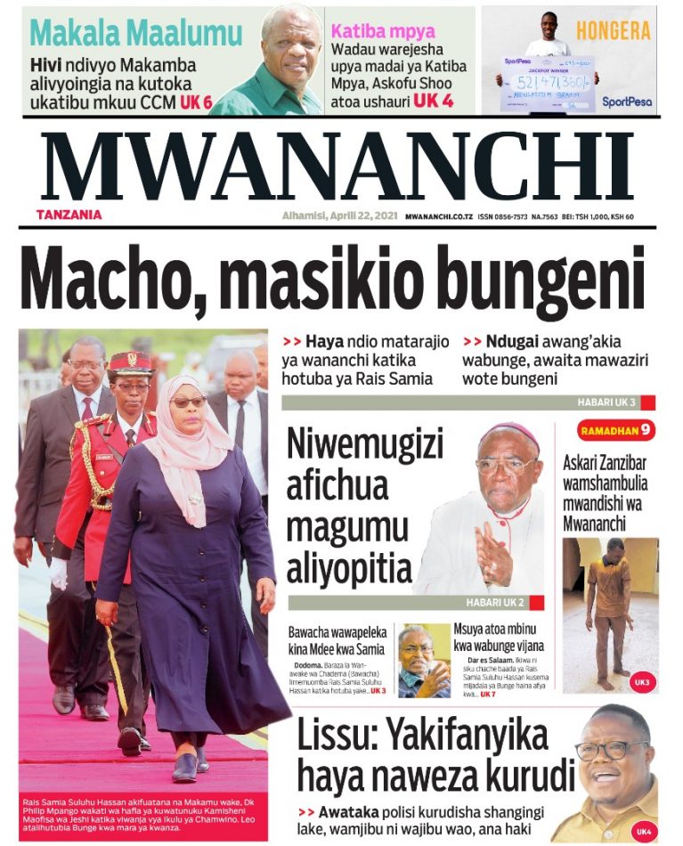 MagazetiPITIA VICHWA VYA HABARI KATIKA MAGAZETI YA LEO APRIL 22,2021 Last updated: 2021/04/22 at 4:13 AM Alex Sonna 5 years ago Share SHARE Alex Sonna April 22, 2021 April 22, 2021 Share this Article Facebook Twitter Email Print Previous Article KIWANDA CHA KUSAFISHA DHAHABU MWANZA CHAANZA UZALISHAJI RASMI Next Article MBUNGE NEEMA LUGANGIRA AFANIKISHA MSAADA WA VIPIMA OXYGEN VITUO VYA AFYA MIKOA 11
