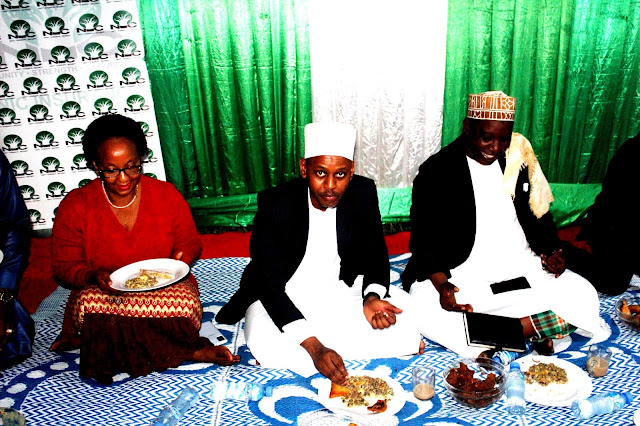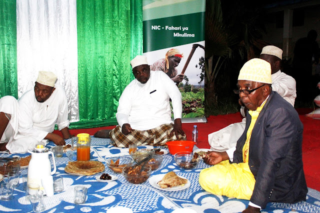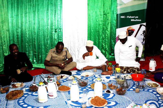 | MKUU wa Mkoa wa Tanga Martine Shigella kushoto aliyevaa suti nyeusi akiwa na Kamanda wa Polisi Mkoa wa Tanga Blasius Chatanda wakipata futari ya pamoja iliyoandaliwa na Shirika la Bima la Taifa (NIC) |