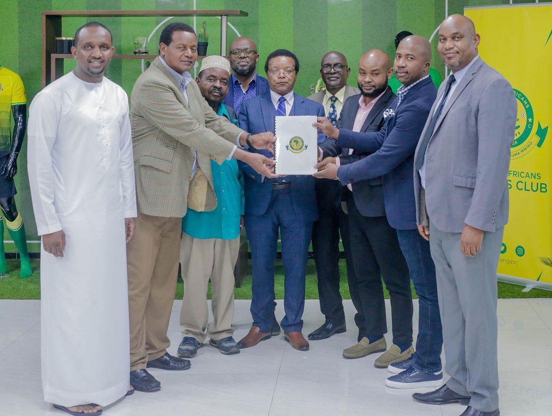 WAJUMBE wa Kamati ya Katiba na Kamati ya Mabadiliko wakikabidhi ripoti ya katiba na muundo pendekezwa kwa Mwenyekiti wa Yanga SC, Dk. Mshindo Msolla kwa niaba ya Kamati ya Utendaji akiambatana na sektretarieti ya klabu kuashiria kukamilika kwa shughuli hiyo.