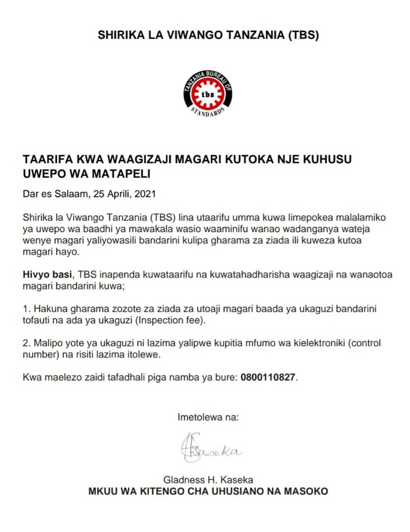 BiasharaTAARIFA KWA WAAGIZAJI MAGARI KUTOKA NJE KUHUSU UWEPO WA MATAPELI Last updated: 2021/04/25 at 4:52 AM joseph 5 years ago Share SHARE joseph April 25, 2021 April 25, 2021 Share this Article Facebook Twitter Email Print Previous Article PITIA VICHWA VYA HABARI KATIKA MAGAZETI YA LEO APRIL 25,2021 Next Article TIMU YA WANAFUNZI WA VYUO VIKUU WATEMBELEA MRADI WA UMEME STIGO