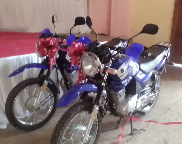 | Pikipiki zilizotolewa na Bodi ya Maji Bonde la Kati kwa watumia maji wa Bwawa la Songwa na Nhumbu kwa ajili ya matumizi ya kutunza vyanzo vya maji. |
