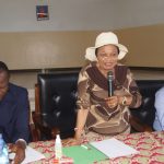 Naibu Waziri wa Habari, Utamaduni, Sanaa na Michezo Mhe. Pauline Gekul (kulia) akizungumza Mei 08, 2021 Jijini Mbeya wakati Mhe. Tulia Ackson (hayupo pichani) Mbunge wa Jimbo la Mbeya Mjini na Naibu Spika wa Bunge la Jamhuri ya Muungano wa Tanzania alipofika Shule ya Sekondari Lioto ya Jijini hapo kufungua Chumba cha Kompyuta pamoja na Ofisi ya walimu kupitia taasisi yake yake ya Tulia Trust Fund.Kushoto ni baadhi ya Manaibu Mawaziri pamoja na Wabunge waliohudhuria tukio hilo.