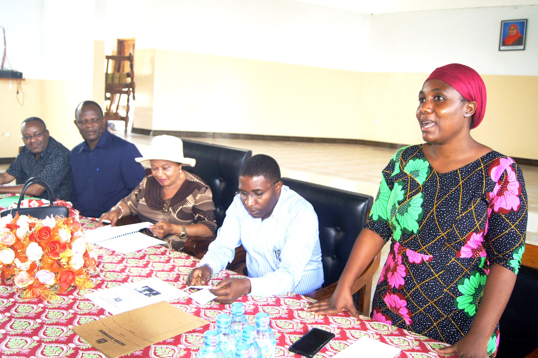 Fundi Sanifu wa Halmashauri ya Mji Mdogo wa Wilaya ya Itigi, Godfrey Byamungu, (kushoto) akitoa taarifa kwa kamati hiyo kuhusu mradi wa maji wa Kisima kilichopo eneo la Raundi Abauti mjini humo.