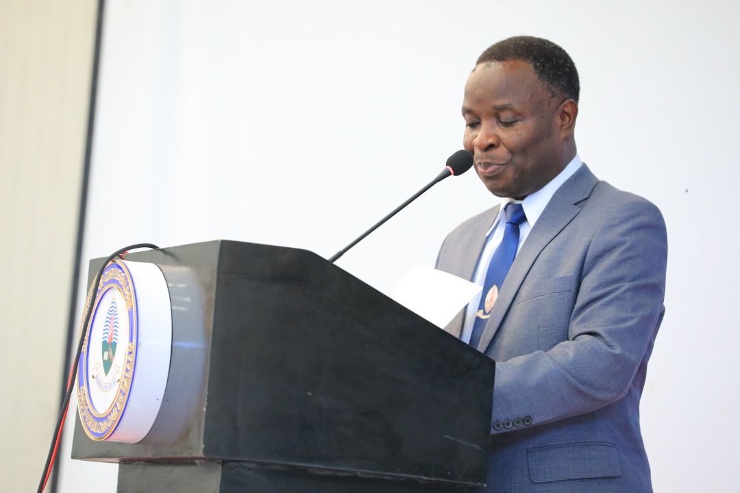 Makamu Mkuu wa Chuo Kikuu cha Dar es Salaam (UDSM) Prof. william Anangisye akizungumza katika hafla ya siku ya wanafunzi ya ubunifu na ujasiriamali na fainali za shindano la mwaka la ubunifu na ujasiriamali la Chuo Kikuu cha Dar es salaam (UDSM) yaliyofanyika Chuoni hapo leo Jijini Dar es Salaam.
