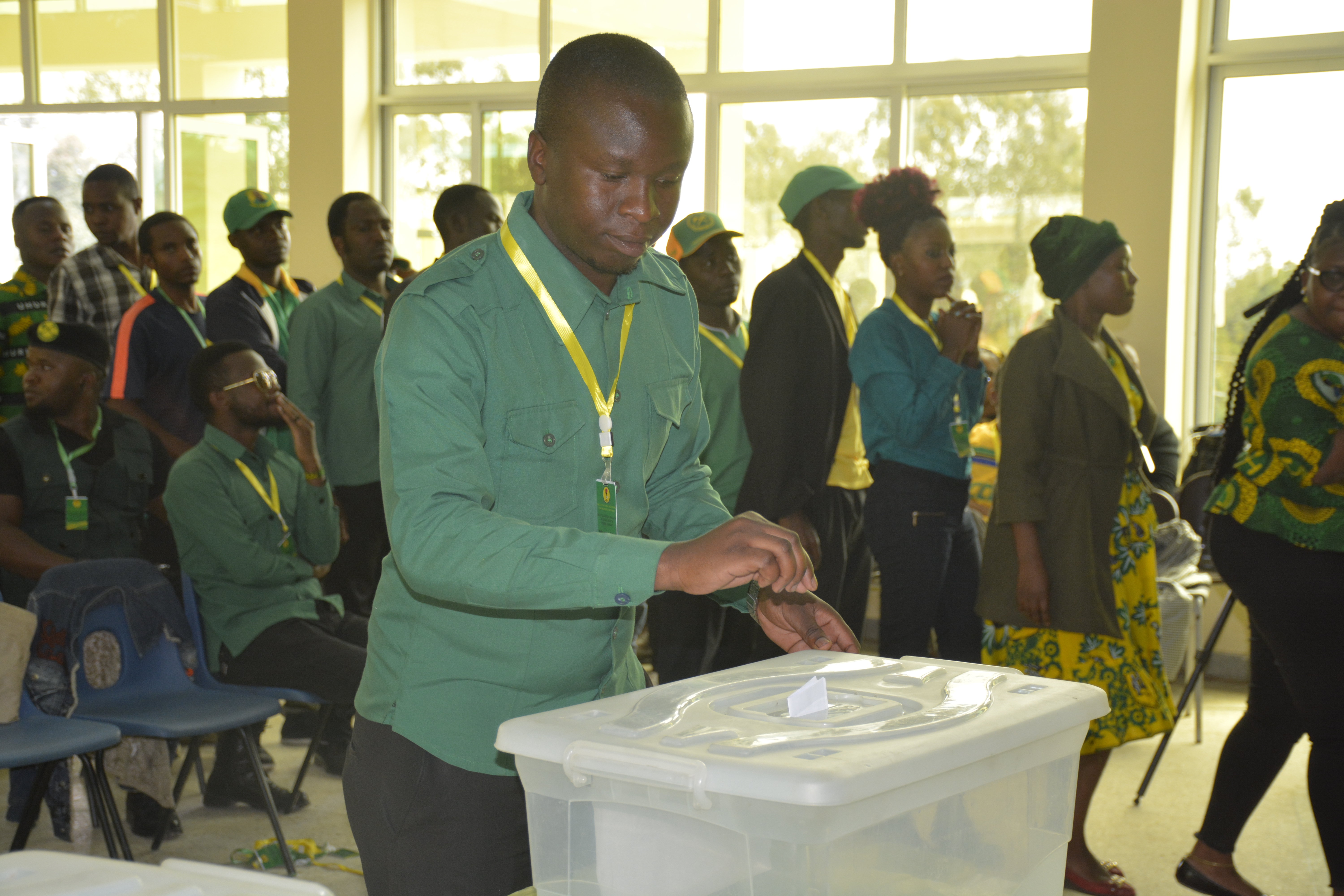 Mjumbe wa umoja huoAizack Kikoti akipiga kura katika uchaguzi wa kumchagua mwenyekiti mpya wa umoja huo