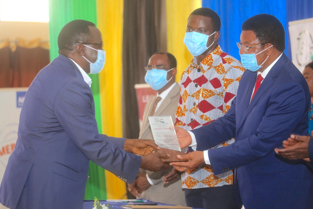 Waziri Mkuu, Kassim Majaliwa akimkabidhi Tuzo ya Uongozi, Mhariri wa Habari Mwandamizi , Absolum Kibanda wakati alipofungua Mkutano Mkuu wa 10 wa Jukwaa la Wahariri na Kongamano la Kitaaluma ukumbi wa Hoteli ya Nashera Mjini Morogoro , Mei 20, 2021. (Picha na Ofisi ya Waziri Mkuu)