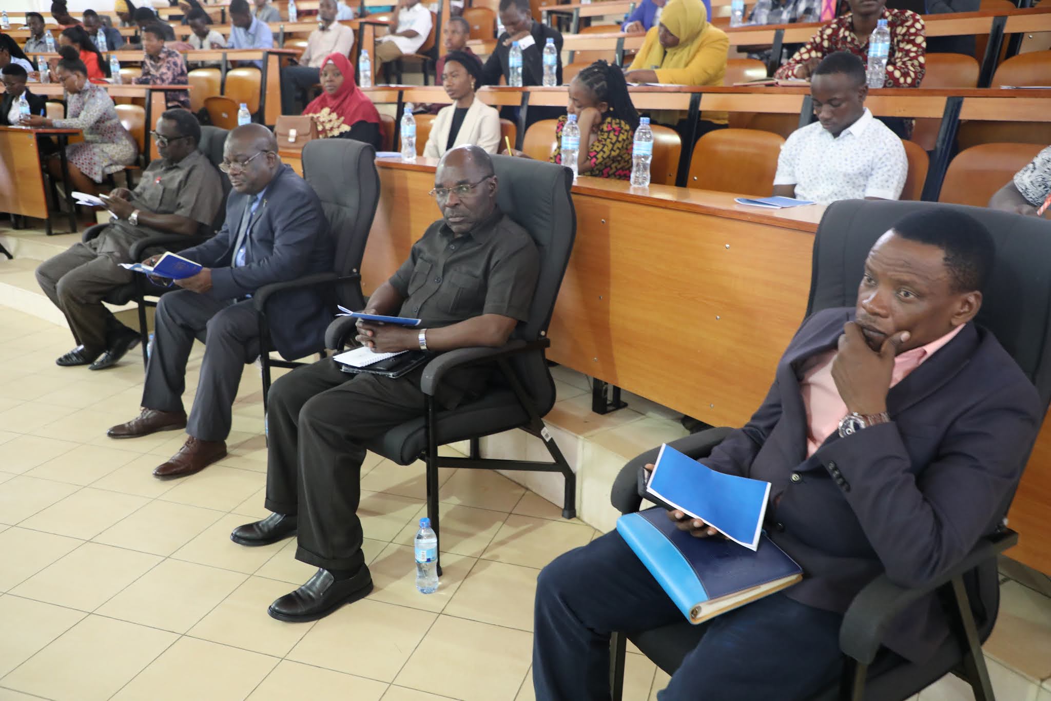 Washiriki wa Kongamno wakiwemo wahadhiri wakifuatialia uwasilishwaji wa mada mbalimbali |