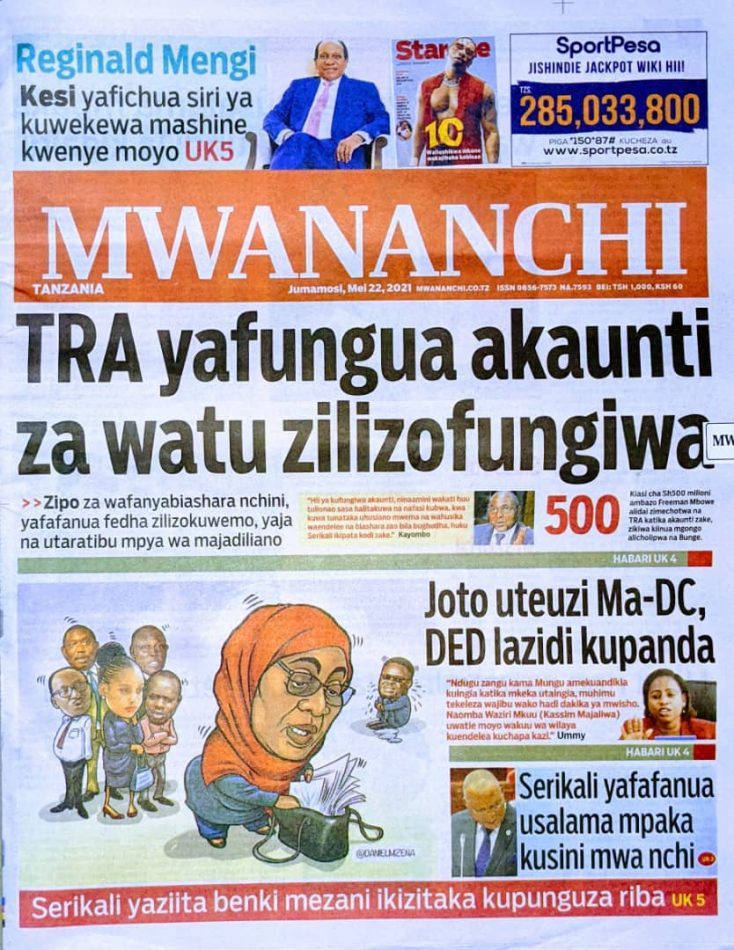 MagazetiPITIA VICHWA VYA HABARI KATIKA MAGAZETI YA LEO MAY 22,2021 Last updated: 2021/05/22 at 2:45 AM Alex Sonna 5 years ago Share SHARE Alex Sonna May 22, 2021 May 22, 2021 Share this Article Facebook Twitter Email Print Previous Article INFINIX STAR ALLIANCE MUDA WA KUONYESHA KIPAJI CHAKO NA KUSHINDA HADI TSH 5,000,000. Next Article TAARIFA KUTOKA TANROADS