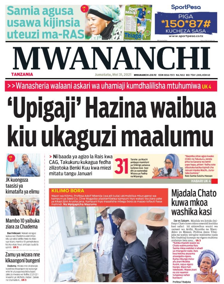 MagazetiPITIA VICHWA VYA HABARI KATIKA MAGAZETI YA LEO MAY 31,2021 Last updated: 2021/05/31 at 2:21 AM Alex Sonna 4 years ago Share SHARE Alex Sonna May 31, 2021 May 31, 2021 Share this Article Facebook Twitter Email Print Previous Article VIJIJI 85 SINGIDA VYANUFAIKA NA MRADI WA BORESHA LISHE Next Article RAIS SAMIA AWAPANDISHA VYEO NA KUWATEUA MAAFISA WAWILI WA POLISI,ATENGUA NA KUTEUA KATIBU TAWALA WA MKOA