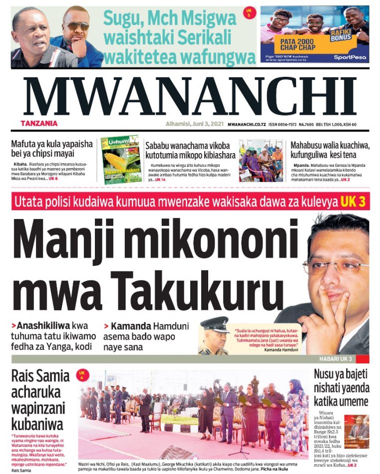 MagazetiPITIA VICHWA VYA HABARI KATIKA MAGAZETI YA LEO JUNE 3,2021 Last updated: 2021/06/03 at 2:58 AM Alex Sonna 5 years ago Share SHARE Alex Sonna June 3, 2021 June 3, 2021 Share this Article Facebook Twitter Email Print Previous Article RAIS MWINYI AMKABIDHI MAMA NYERERE KITABU CHA SIMULIZI YAKE Next Article WAZIRI BALOZI MULAMULA AMESEMA SERIKALI ITAKUJA NA SERA YA DIASPORA KABLA YA MWAKA HUU KUISHAa