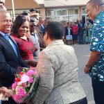 Mtendaji Mkuu wa Wakala wa Ufundi na Umeme( TEMESA), Mhandisi Japhet Maselle (aliyevaa suti nyeusi), akitoa maelezo kwa Katibu Mkuu wa Wizara ya Ujenzi na Uchukuzi, Mhandisi Joseph Malongo, mara baada ya uzinduzi wa vitendea Kazi vilivyonunuliwa na Wakala huo, Jijini Dodoma.