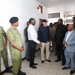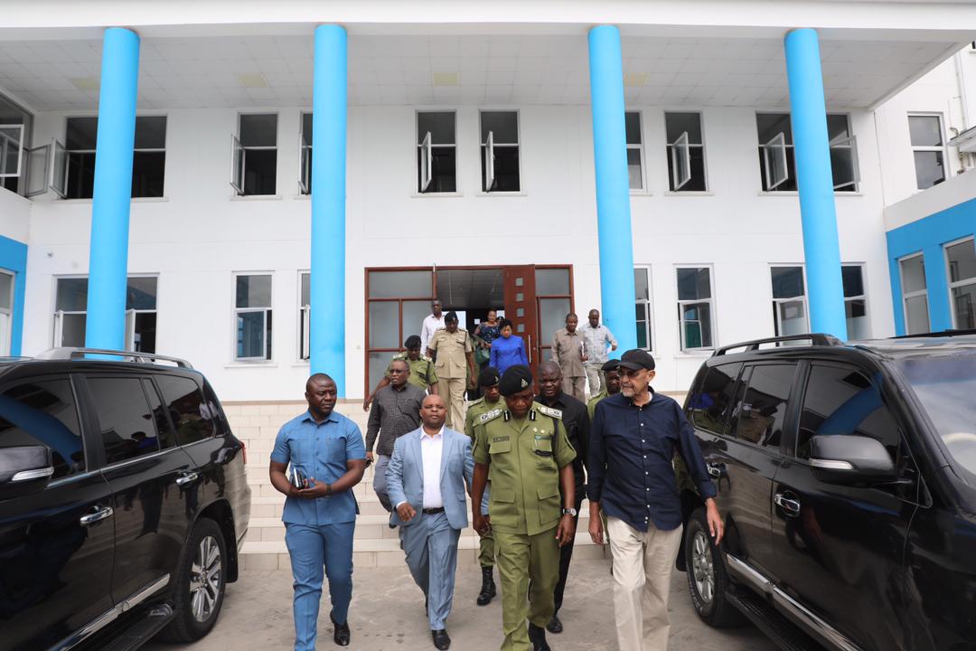 Naibu Waziri wa Mambo ya Ndani ya Nchi, Khamis Hamza Chilo (wapili kushoto) akiwa na Mwenyekiti wa Kamati ya Kudumu ya Bunge ya Mambo ya Nje Ulinzi na Usalama, Mussa Zungu(wakwanza kulia) na Inspekta Jenerali wa Polisi nchini, Simon Sirro(wapili kulia), wakitoka ndani ya Kituo cha Polisi Oysterbay ikiwa ni ukaguzi wa Mradi uliohusisha kituo hicho, nyumba za polisi zilizopo Mikocheni na Kunduchi.Ziara hiyo imefanyika leo jijini Dar es Salaam.Picha na Wizara ya Mambo ya Ndani ya Nchi