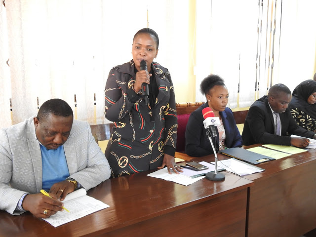 Katibu tawala wa mkoa wa Iringa Happiness Seneda akiongea na watendaji wa halmashauri ya Mji wa Mafinga wakati wa baraza maalum la kujibu hoja za CAG