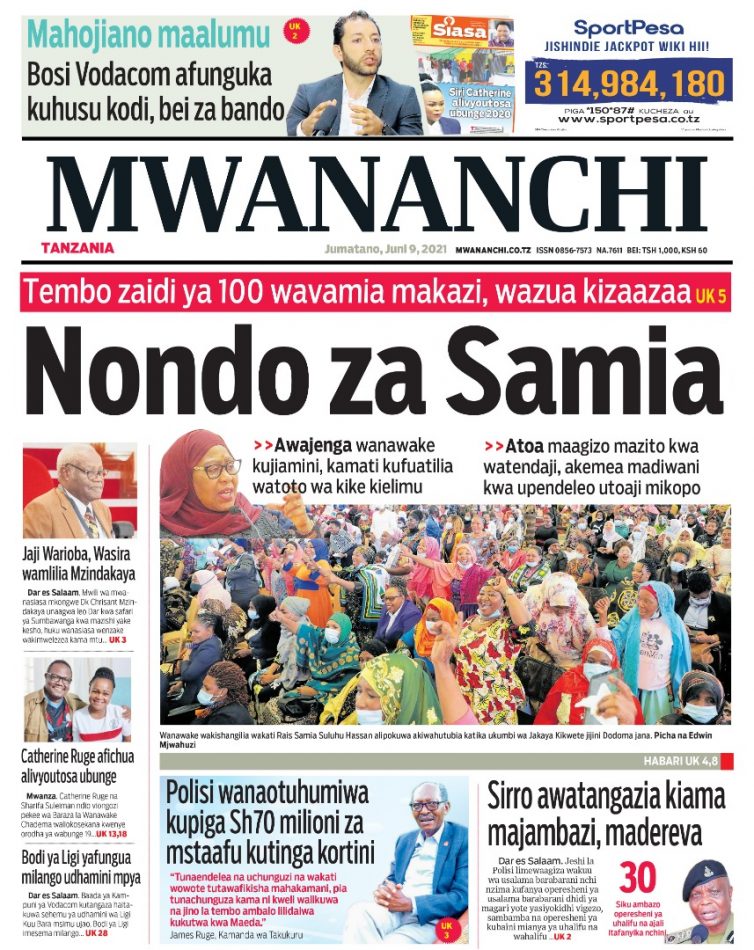 MagazetiPITIA VICHWA VYA HABARI KATIKA MAGAZETI YA LEO JUNE 9,2021 Last updated: 2021/06/09 at 3:11 AM Alex Sonna 4 years ago Share SHARE Alex Sonna June 9, 2021 June 9, 2021 Share this Article Facebook Twitter Email Print Previous Article RC MTAKA ATAKA RANCHI YA MIFUGO YA KONGWA IWANUFAISHE WAFUGAJI MKOANI DODOMA Next Article RAIS SAMIA AMTEUA AFISA MTENDAJI MKUU WA NMB KUCHAKATA HAKI ZA WANAWAKE KIUCHUMI