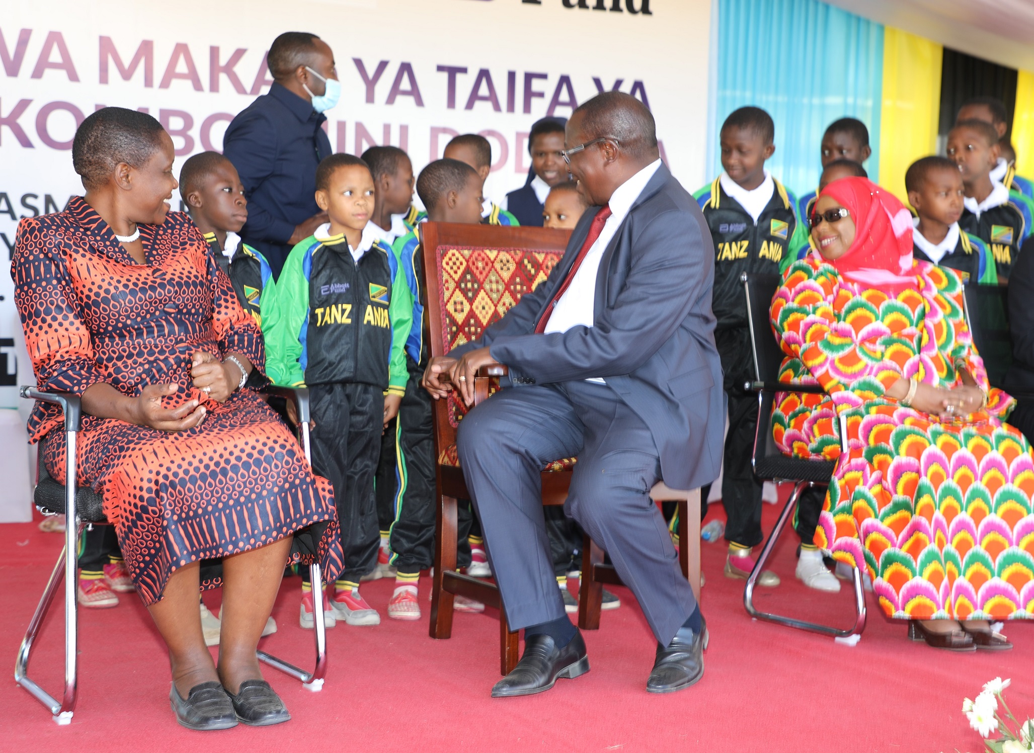 Makamu wa Rais wa Jamhuri ya Muungano wa Tanzania Mhe. Dkt. Philip Mpango, akizindua Makao ya Taifa ya Watoto iliyoambatana na Maadhimisho ya Siku ya Mtoto wa Afrika, iliyoadhimishwa leo Juni 16,2021 katika Kijiji cha Kikombo Jijini Dodoma.