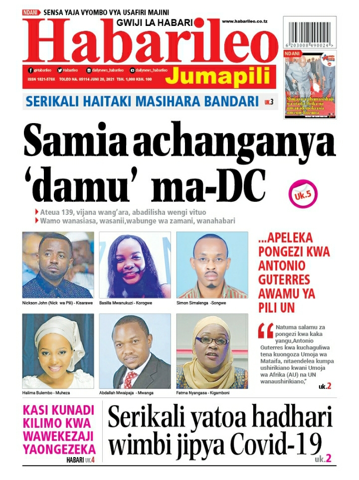 MagazetiPITIA VICHWA VYA HABARI KATIKA MAGAZETI YA LEO JUNE 20,2021 Last updated: 2021/06/20 at 5:49 AM Alex Sonna 4 years ago Share SHARE Alex Sonna June 20, 2021 June 20, 2021 Share this Article Facebook Twitter Email Print Previous Article KAMATI YARIDHISHWA NA ELIMU YA UVUVI HARAMU BWAWA LA MTERA Next Article WAZIRI KALEMANI AZINDUA REA III AWAMU YA PILI MTWARA