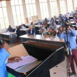 Baadhi ya Maafisa wa Tume wakifuatilia Mkutano wa Tume Namba 4 kwa mwaka 2020/2021 ulioanza leo Jijini Dar es Salaam. Kutoka kushoto ni Bibi Neema mkenda (Afisa Utumishi), Bibi Kombe Shayo (Katibu wa Afya) na Bibi Christina Muhe (Afisa Utumishi). (Picha na PSC).