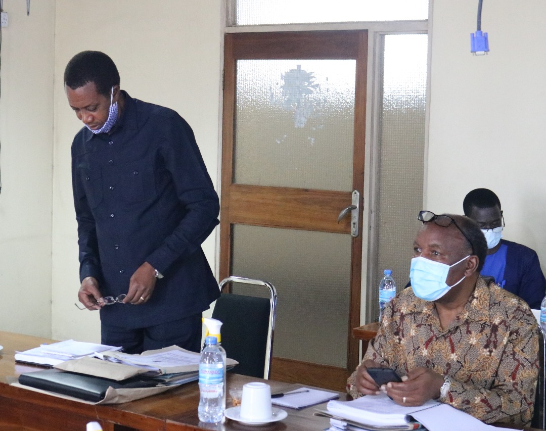 KATIBU wa Tume ya Utumishi wa Umma, Bw. Nyakimura Muhoji (aliyesimama) akifafanua jambo kabla ya kuanza kwa Mkutano wa Tume namba 4,kwa mwaka 2020/2021 Jijini Dar es Salaam leo. Kulia ni Kamishna wa Tume, Mheshimiwa Daniel Ole Njoolay. (Picha na PSC).
