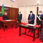 Katibu wa TSC, Paulina Nkwama akiasini kitabu cha wageni mara baada ya kuwasili ofisi za TSC Chamwino kwa ziara ya kikazi iliyofanyika hivi karibuni.