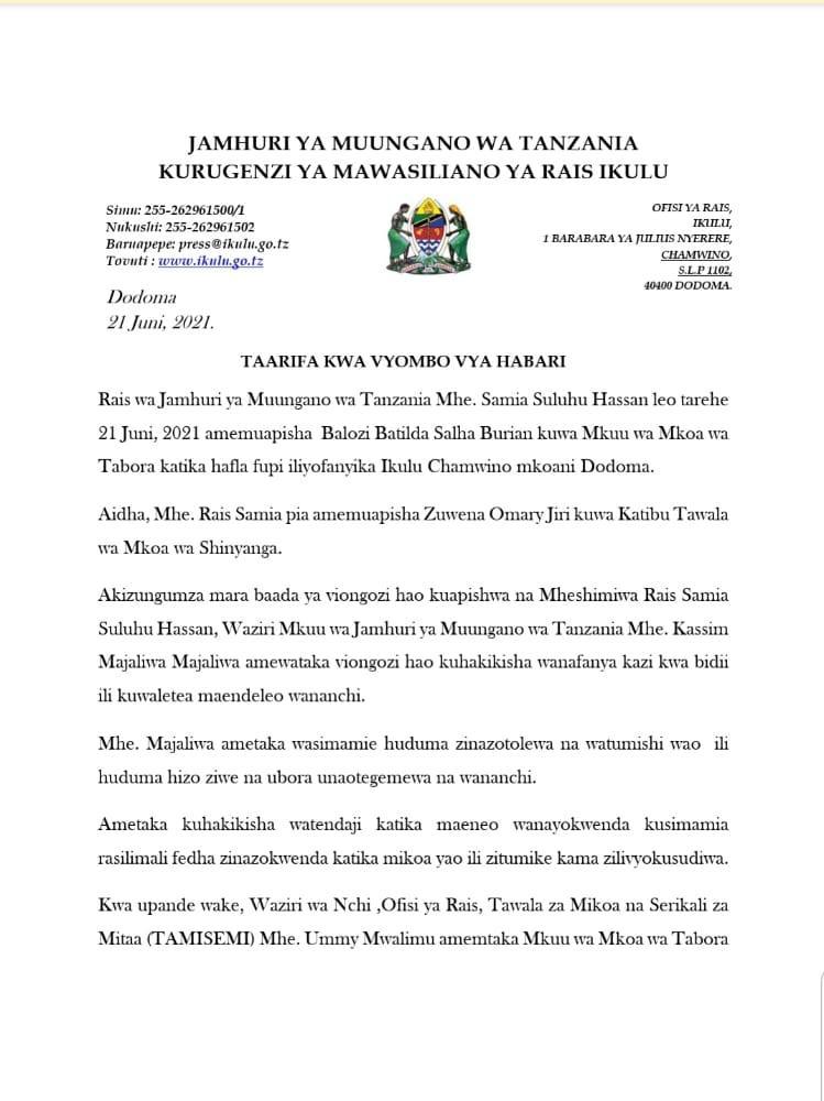 MchanganyikoRAIS SAMIA AWAAPISHA VIONGOZI WAWILI IKULU CHAMWINO JIJINI DODOMA Last updated: 2021/06/21 at 1:26 PM Alex Sonna 4 years ago Share SHARE Rais Mhe. Samia Suluhu Hassan akiwaapisha Viongozi wawili, Ikulu Chamwino jijini Dodoma leo Juni 21,2021…………………………………………………………………… Alex Sonna June 21, 2021 June 21, 2021 Share this Article Facebook Twitter Email Print Previous Article NKWAMA: TUSISUBIRI WALIMU WATENDE MAKOSA ILI TUWAADHIBU Next Article WAZIRI UMMY MWALIMU, LIBETALA MULAMULA WASISITIZA UMUHIMU WA KUTUNZA MAZINGIRA