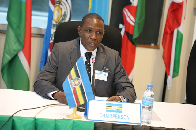 | Mwenyekiti wa Mkutano wa Mawaziri ambaye ni Naibu Waziri wa Kilimo, Mifugo na Ushirika wa Kenya, Mhe. Lawrence Angolo akizungumza wakati wa Mkutano wa 14 wa Baraza la Kisekta la Mawaziri wa Kilimo na Usalama wa Chakula wa Jumuiya ya Afrika Mashariki uliofanyika jijini Arusha tarehe 25 Juni 2021 |