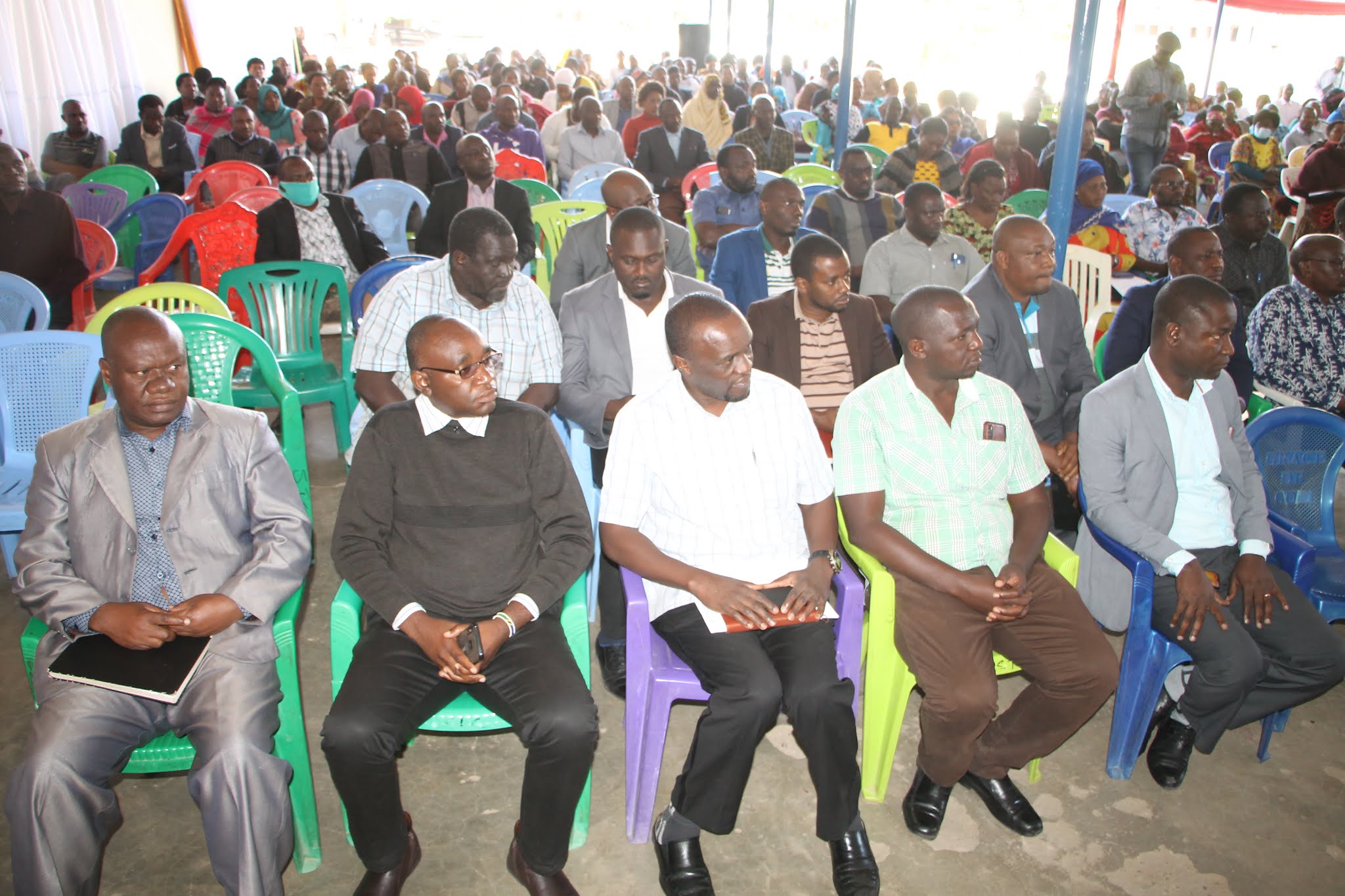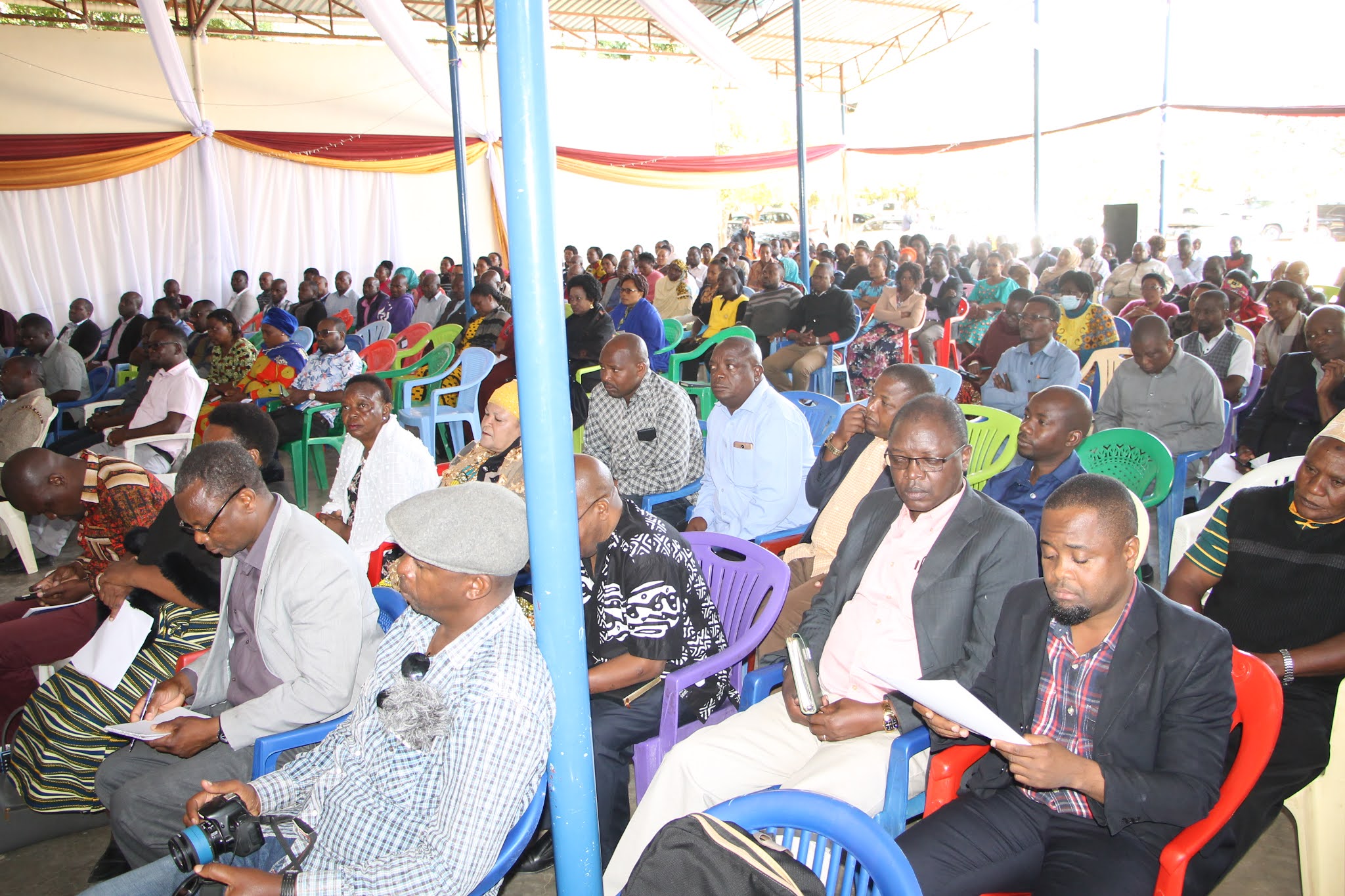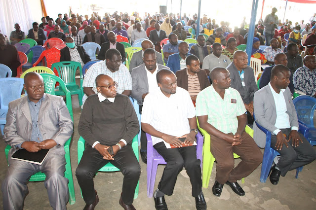 Watumishi na watendaji wa Manispaa ya Singida wakimsikiliza mkuu wa mkoa wakati alipokuwa akizungumza nao kwenye mkutano huo.