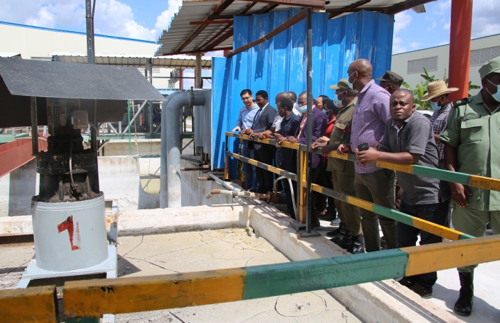 Mhe. Jafo akiwa kwenye ziara ya ukaguzi wa Mazingira katika kiwanda hicho amebaini changamoto mbalimbali za kimazingira ikiwemo utiririshwaji wa maji machafu kutoka kiwandani hapo na kwenda kwenye Mto Mbiki uliopo karibu na kiwanda hicho.