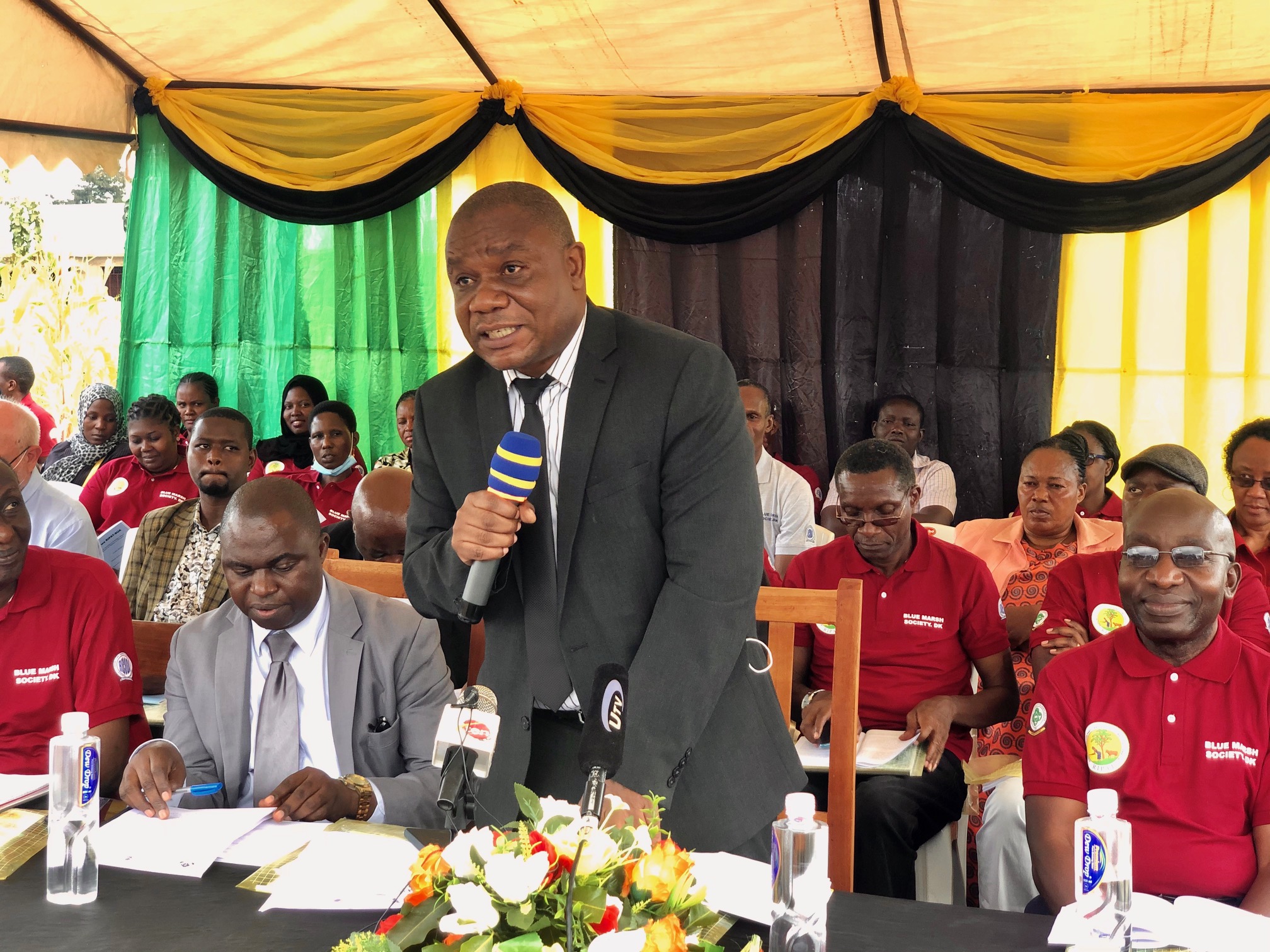 Kaimu Mkurugenzi Msaidizi Huduma za Ugani na utafiti kutoka Wizara ya Kilimo Charles Mjema akitoa salamu za Wizara kwenye hafla hiyo ya kufunga mradi.