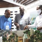 Dr. Venance Mwasse Kaimu Mkurugenzi Mtendaji wa Shirika la Madini Tanzania STAMICO akitoa maelekezo kwa Deus Magala Mkurugezi Rasilimali watu kushoto na Geofrey Meena Mkuu wa Masoko na Mawasiliano katikati wakati alipokagua maandalizi ya banda hilo katika maonesho ya 45 ya Biashara ya Kimataifa ya Sabasaba yanayofanyika kwenye viwanja vya Mwalimu Julius Nyerere Barabara ya Kilwa jijini Dar es Salaam.