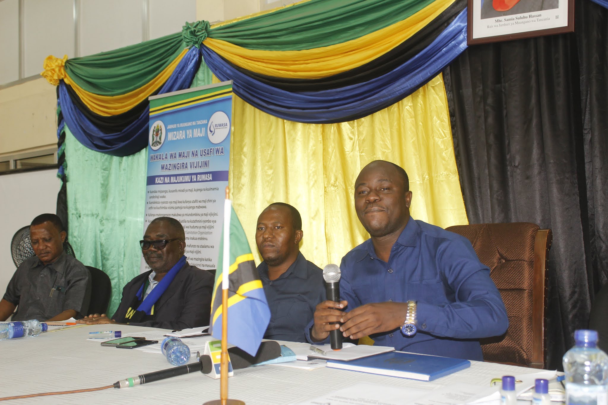 WAZIRI wa Maji Jumaa Aweso akizungumza wakati wa kikao hicho kushoto ni Mkuu wa wilaya ya Tanga Hashim Mngandilwa |