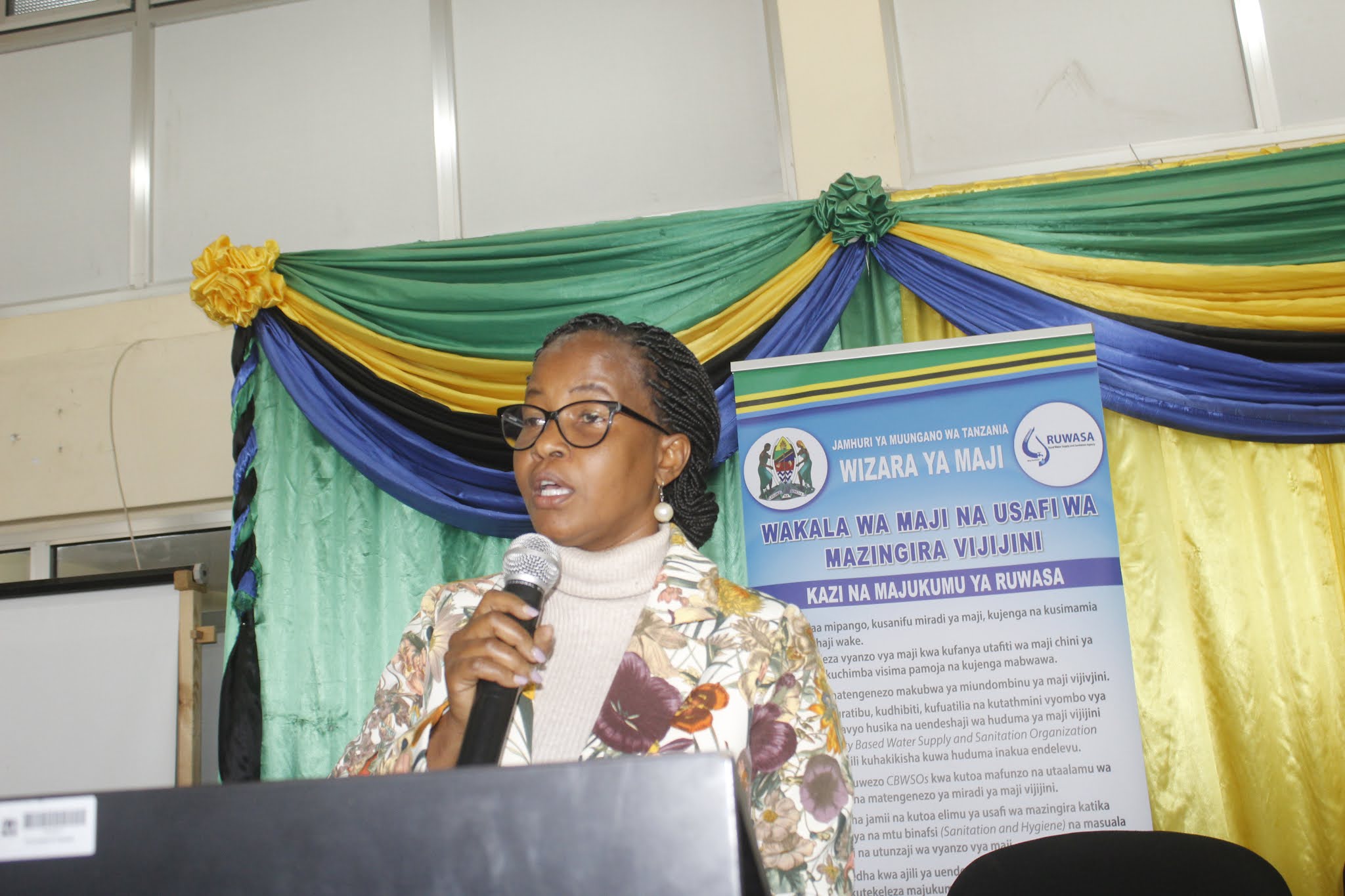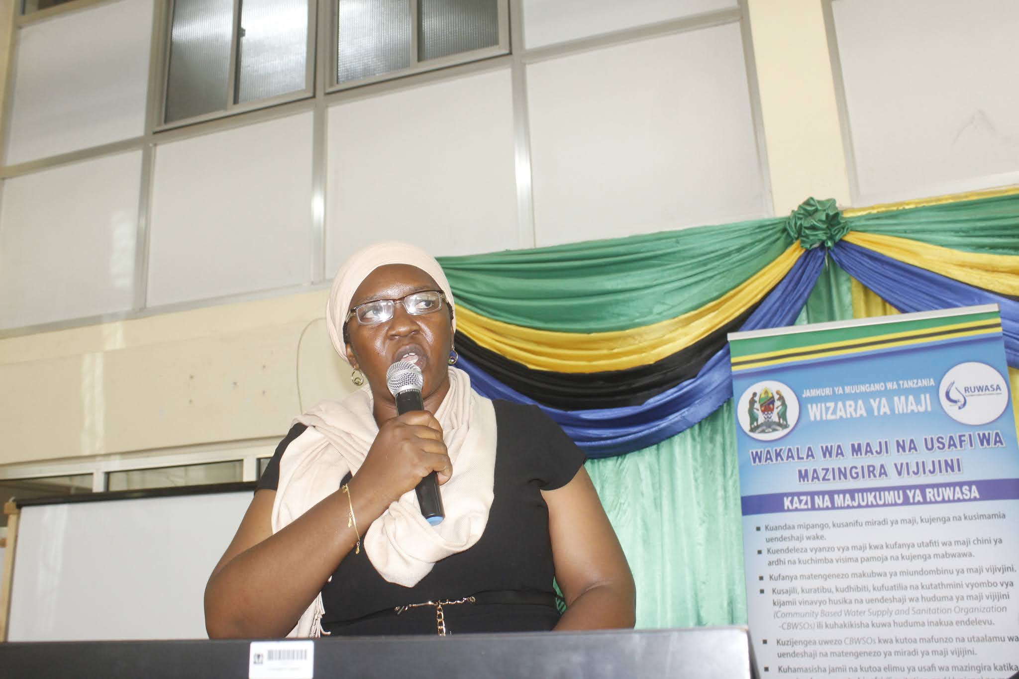 Meneja wa Ruwasa Mkoa wa Tanga Mhandisi Upendo Lugongo akizungumza jambo ewakati wa kikao hicho |