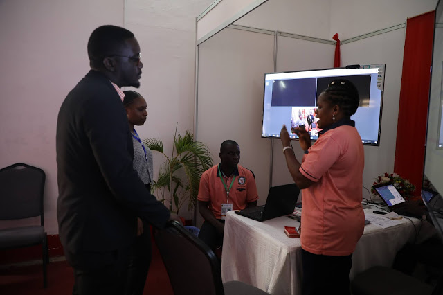 Mchambuzi wa Mifumo ya Komputa wa Mahakama ya Tanzania Delifina Mwakyusa akitoa ufafanuzi kwa wananchi namna mifumo hiyo inavyoisaidia Mahakama wakati wa usikilizaji wa mashauri mahakamani kwenye Maonyesho ya 45 ya Kibiashara ya Kitaifa Jijini Dar es salaam