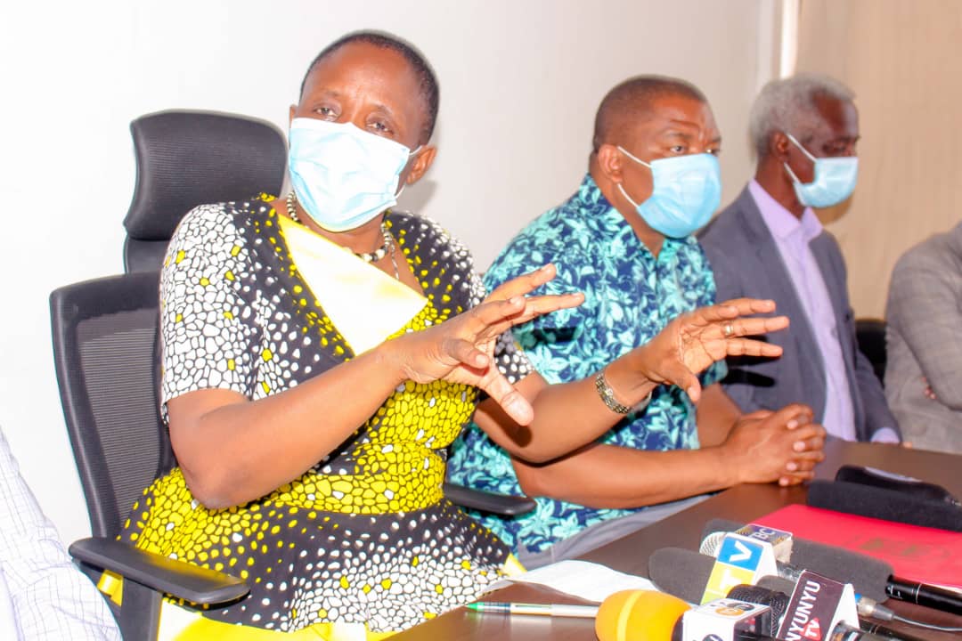 Waziri wa Afya, Maendeleo ya Jamii, Jinsia, Wazee na Watoto, Dk Dorothy Gwajima akizungumza na wandishi wa habari katika Hospitali ya Rufaa ya Mkoa wa Dodoma wakati alipokutana na Viongozi wa Mkoa wa Dodoma na kusisitiza kuhamasisha wananchi kuchukua tahadhari ya Corona.