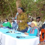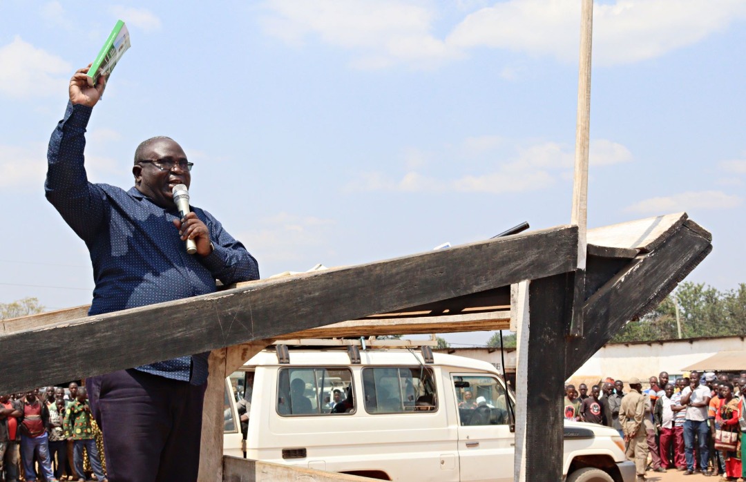 Naibu Waziri wa Ujenzi na Uchukuzi Mhandisi Godfrey Kasekenya, akiongea na wakazi wa kata ya Rulenge Wilayani Ngara, aliposimama kuzungumza nao wakati akikagua barabara ya Omubuga, Rulenge hadi Murugarama (KM 32), iliyotengewa fedha na Serikali kwa ajili ya kuanza kujengwa kwa kiwango cha lami.