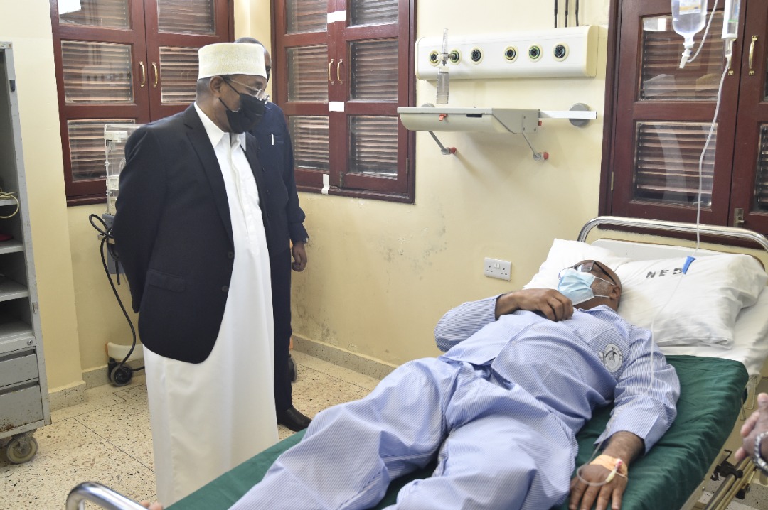 RAIS wa Zanzibar na Mwenyekiti wa Baraza la Mapinduzi Mhe.Dk.Hussein Ali Mwinyi akimjulia hali Waziri wa Afya na Ustawi wa Jamii Jinsia Wazee na Watoto Zanzibar. Mhe. Nassor Ahmed Mazrui aliyelazwa katika la Wodi ya Taasisi ya ‘Neurosurgical Institute’ katika Hospitali Kuu ya Mnazi Mmoja Jijini Zanzibar.(Picha na Ikulu)