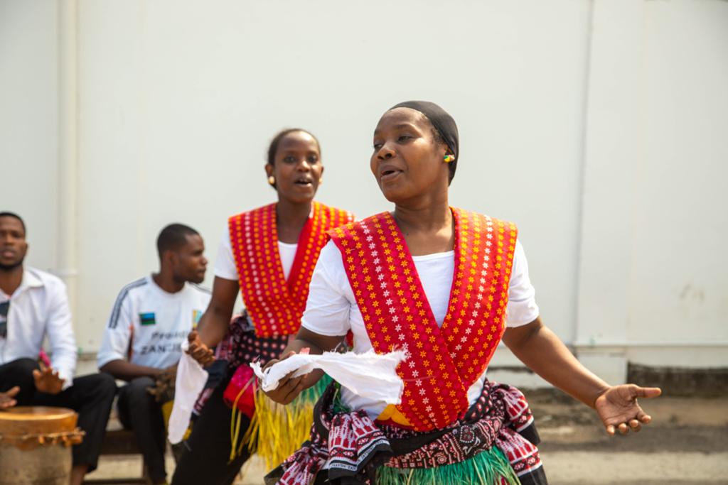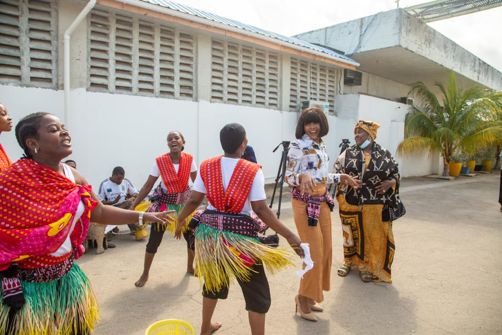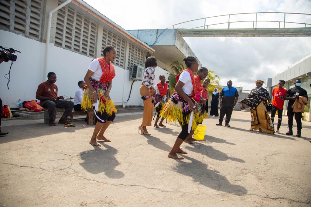Msanii wa muziki wa kizazi kipya Zuchu akicheza ngoma na kikundi cha utamaduni mara baada ya kuwasili kisiwani humo.