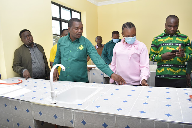 mkuu wa mkoa wa Iringa Queen Sendiga akinawa mikono kwenye moja ya maabara ya shule ya sekondari ya Mlamke iliyopo manispaa ya Iringa.