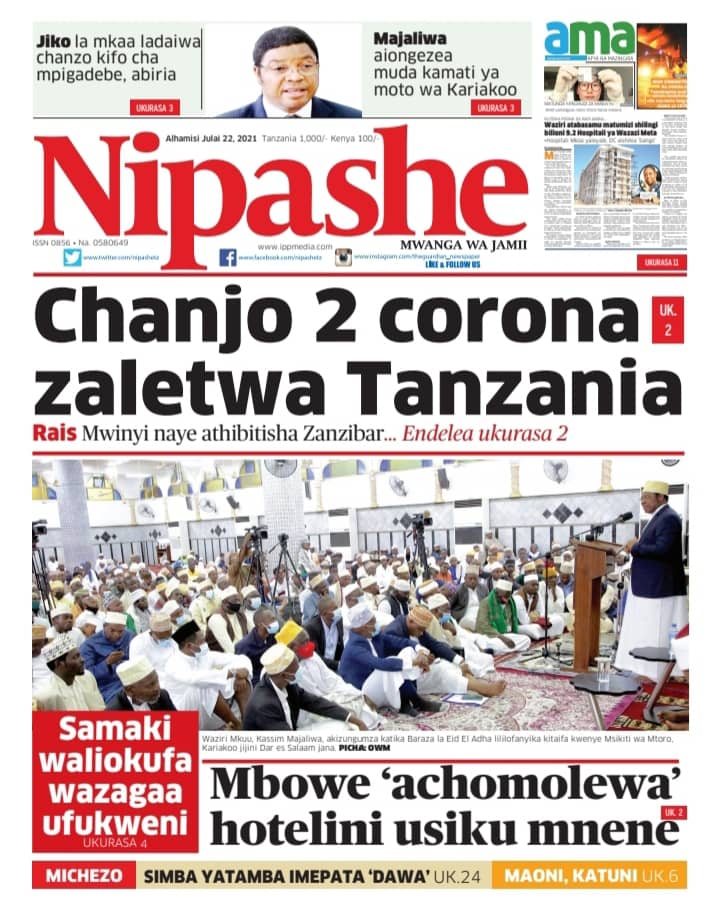 MagazetiPITIA VICHWA VYA HABARI KATIKA MAGAZETI YA LEO JULY 22,2021 Last updated: 2021/07/22 at 3:53 AM Alex Sonna 4 years ago Share SHARE Alex Sonna July 22, 2021 July 22, 2021 Share this Article Facebook Twitter Email Print Previous Article MWENGE WA UHURU WAPITISHA MIRADI YOTE WILAYANI IRAMBA, DC AMWAGIWA SIFA Next Article TAMISEMI QUEENS HAISHIKIKI KWENYE NETIBOLI LIGI DARAJA LA KWANZA