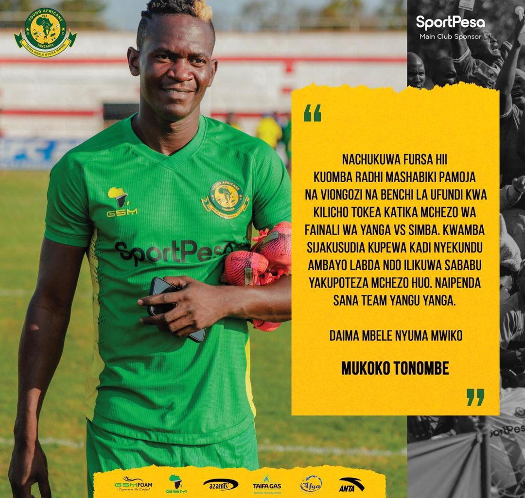 KIUNGO wa Yanga SC, Mukoko Tonombe, raia wa Jamhuri ya Kidemokrasia ya Kongo (DRC) amewaomba radhi mashabiki wa timu yake pamoja na makocha baada ya kutolewa kwa kadi nyekundu katika fainali ya Kombe la Shirikisho la Soka Tanzania (TFF), maarufu kama Azam Sports Federation Cup (ASFC).