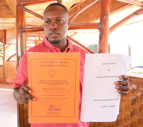 Mwenyekiti wa Mwanza Friends Association, Patrick Joseph akionesha Katiba na Nyaraka mbalimbali za Kikundi cha Mwanza Friends Association.